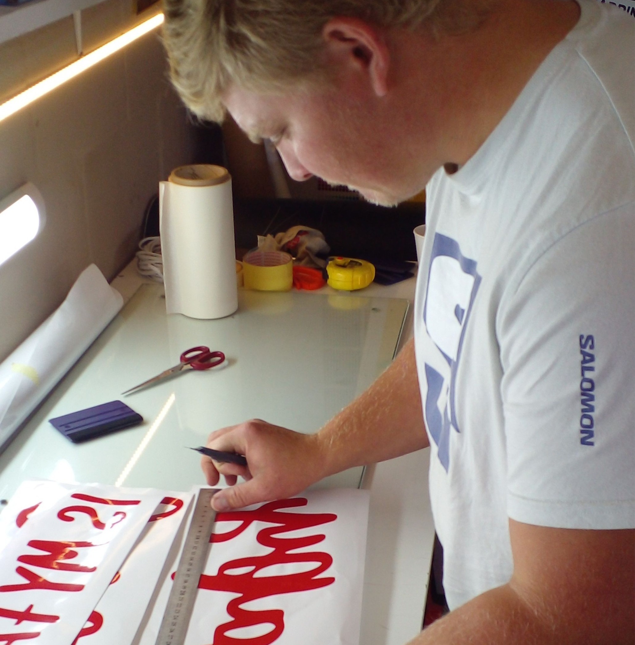 Sign Academy South Africa's Basic Vinyl Application training course covers the fundamentals of preparing surfaces, handling vinyl materials, and applying them accurately to various substrates. Participants would learn techniques for measuring and cutting vinyl, as well as proper alignment and smoothing methods to avoid wrinkles and air bubbles. Instruction also includes information on different types of vinyl, appropriate tools, and safety precautions.